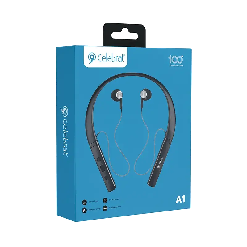 هندزفری گردنی بلوتوثی مدل A1 برند Celebrat با طراحی گردنی (Neckband) ساخته شده تا هنگام استفاده طولانیمدت: